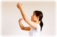 1のあと宙に向かって両手を広げ、腹式呼吸をしながら手をクルクルと手前に回し、